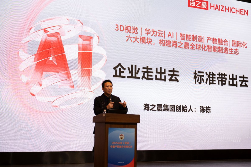 海之晨工业装备有限公司总经理陈栋带来“企业走出去,标准带出去——依托“3D视觉+云+AI+智能制造+产教融合+国际化”六大模块,构建全球化智能制造生态”为主题的企业案例分享。