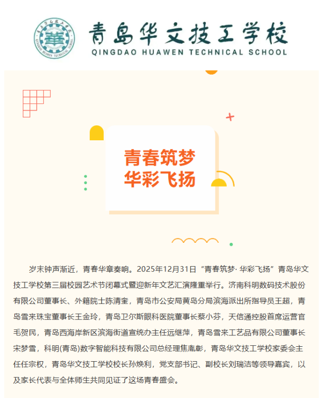 发布时间:[2026-01-26 08:25:37.0] 作者:青岛华文技工学校 新闻类别:[媒体聚焦] 阅读次数:35