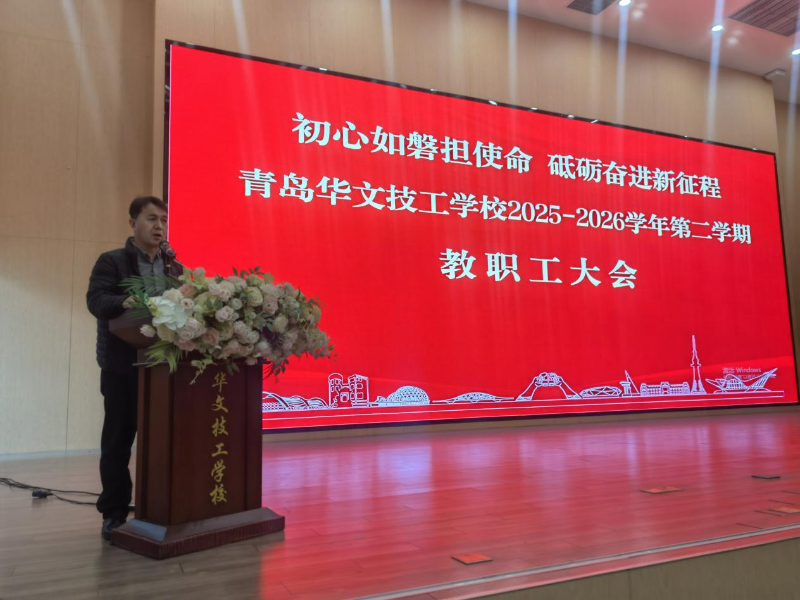初心如磐担使命 · 砥砺奋进新征程 | 青岛华文技工学校召开2025-2026学年第二学期全体教职工大会