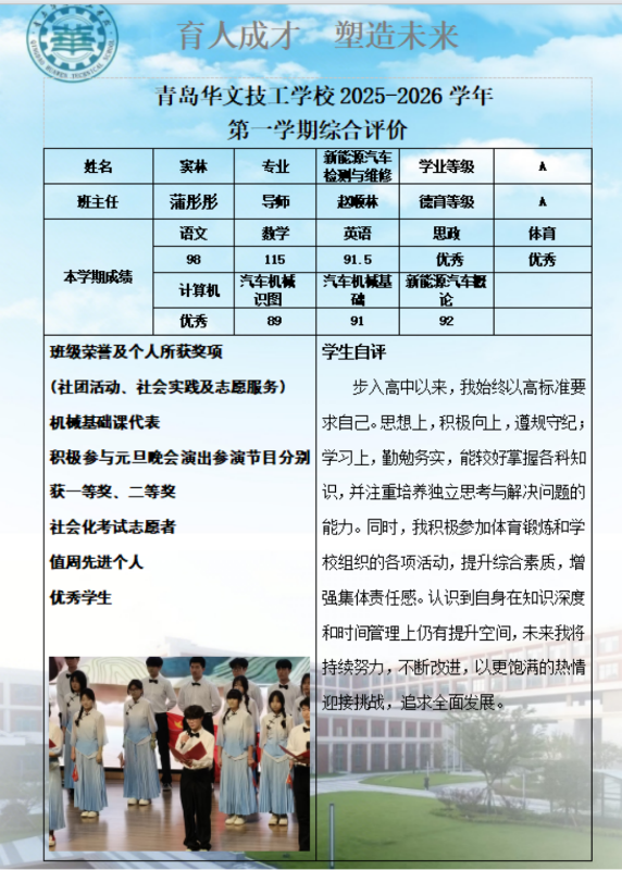 创新建立德育学分银行制度,以积分形式全面记录学生日常品德表现、行为规范遵守、活动参与情况、素养提升成效等成长轨迹,实现德育工作可量化、可积累、可激励;完善学期末综合评价体系,融合德育学分、学业成绩、技能实操、品德表现等多维度指标,进行全面、客观、精准的考核评价,以科学评价倒逼学生素养提升,让每一位学生的成长都可衡量、可追踪、可进步。